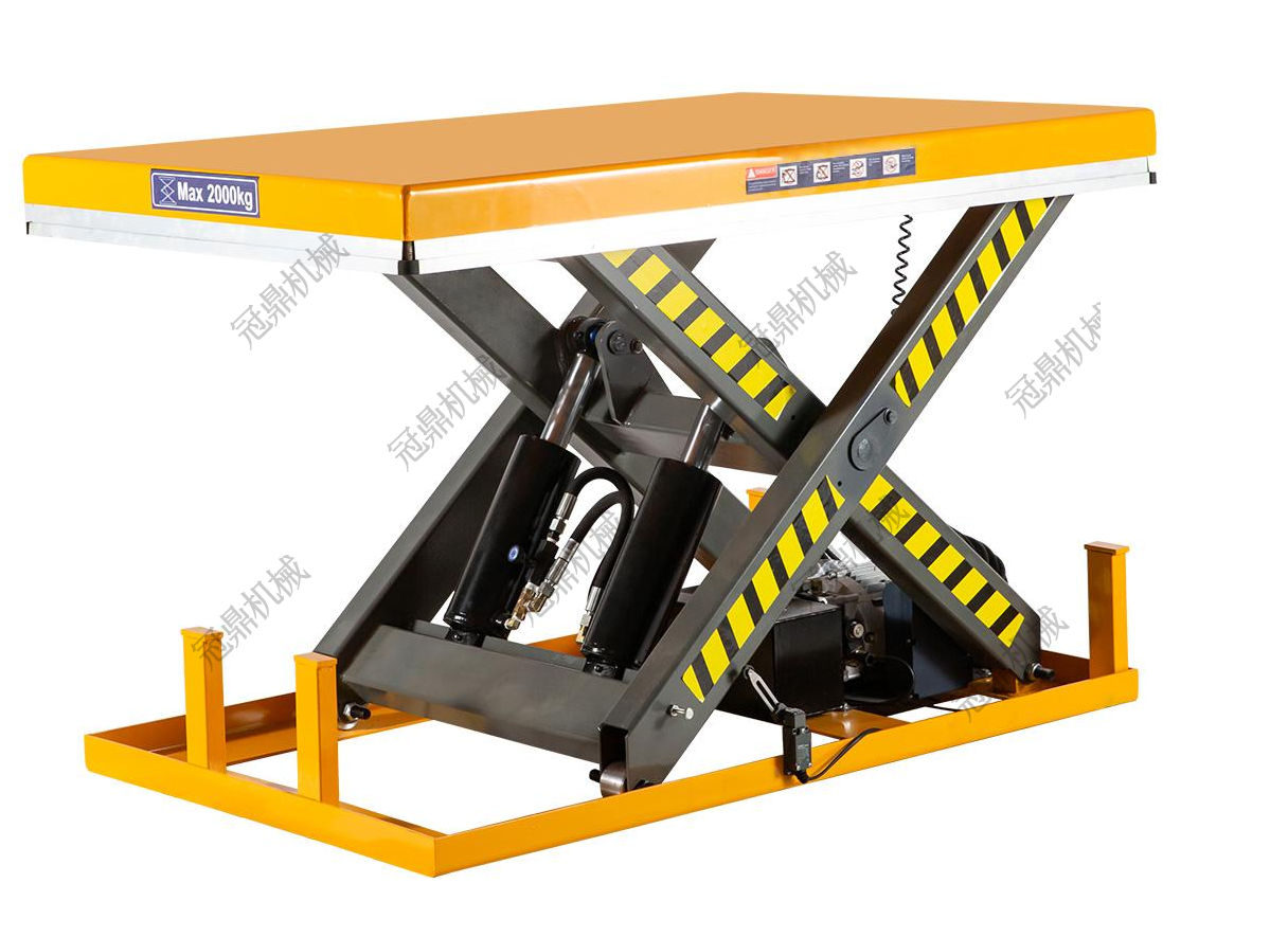采用進口高品質泵站,電動升降,貨物起升平穩有力整體密封性油缸,有效避免油缸漏油弊端,提高安全性,剪叉加厚防夾設計,結實耐用臺面下方增加安全檔條裝置