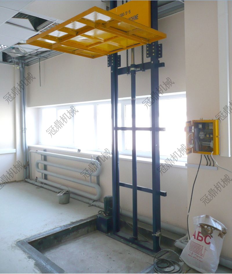 導(dǎo)軌式升降機(jī)是一種非剪叉式液壓升降機(jī)械設(shè)備。用于二三層工業(yè)廠房、倉(cāng)庫(kù)、酒樓樓層間的貨物傳輸。最低高度在150-300mm,尤其適合不能開(kāi)挖地坑的工作場(chǎng)所。并且無(wú)須上部吊點(diǎn),形式多樣化(單柱,雙柱,四柱)。設(shè)備運(yùn)行平穩(wěn),導(dǎo)軌式升降機(jī)的導(dǎo)軌一般為槽鋼、H鋼,方管焊接制成,操作簡(jiǎn)單可靠,貨物傳輸經(jīng)濟(jì)便捷。