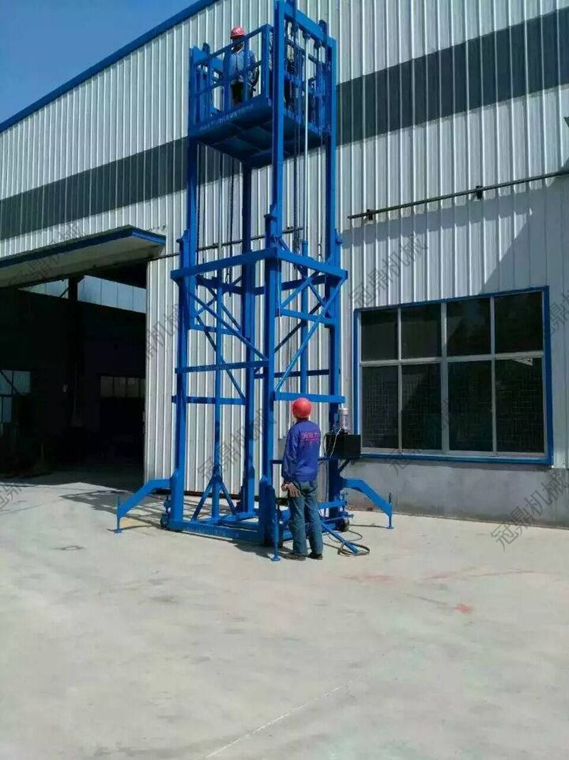 導軌式升降機是一種非剪叉式液壓升降機械設備。用于二三層工業廠房,倉庫,酒樓樓層間的貨物傳輸。最低高度在150-300mm,尤其適合不能開挖地坑的工作場所。并且無須上部吊點,形式多樣化(單柱,雙柱,四柱)。設備運行平穩,導軌式升降機的導軌一般為槽鋼、H鋼,方管焊接制成,操作簡單可靠,貨物傳輸經濟便捷。