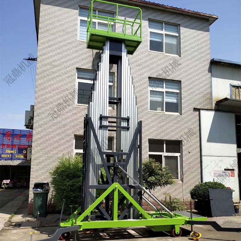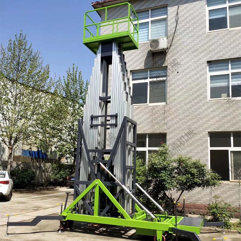 整體采用高強度鋁型材精制而成由于型材強度高,具有造型美觀、體積小、重量輕、結構緊湊、移動方便、升降平臺平穩、操作方便、安全可靠等優點。令高空作業更方便快捷,能夠快速、慢速行走,可調速,是現代企業高效安全生產之理想高空作業設備。主要產品分為單立柱鋁合金,雙立柱鋁合金,三立柱鋁合金、四立柱鋁合金。