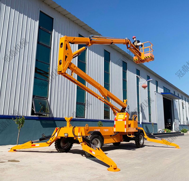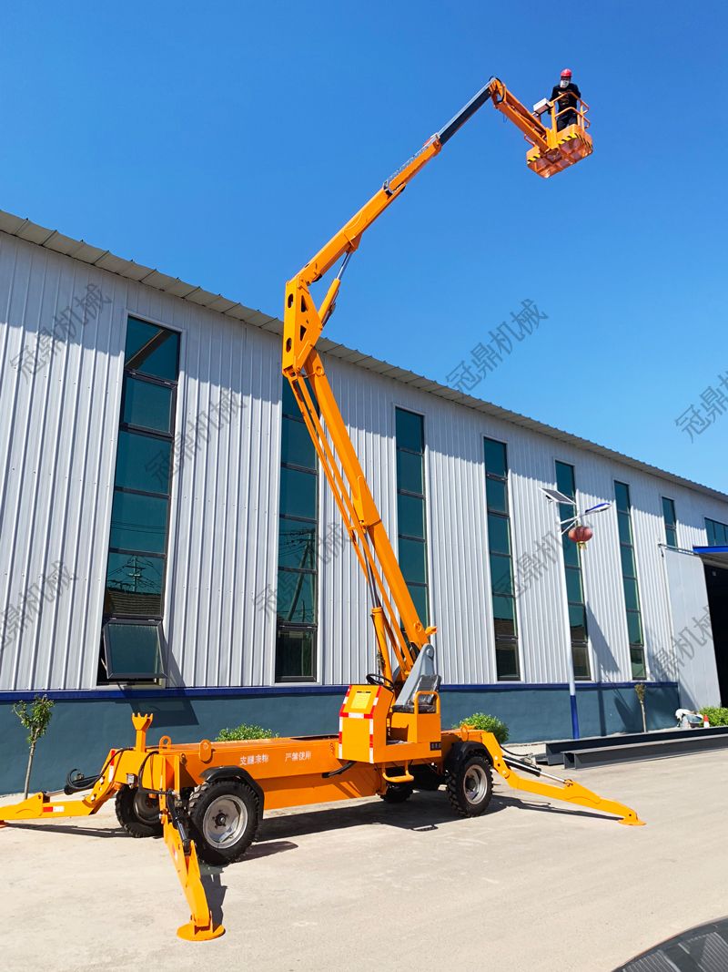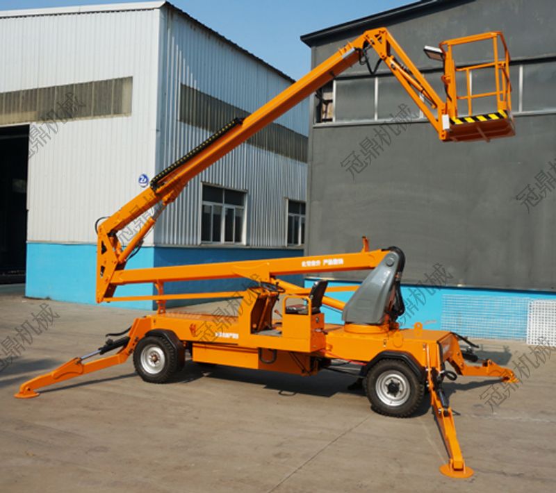 牽引折臂式高空作業平臺:移動方便,曲臂結構緊湊.采用新型優質型鋼,強度高,重量輕,直接接入交流電或采用車自身動力啟動,架設速度快,具有伸縮臂,工作臺既可升高又可延伸,還可360度旋轉,易于跨越障礙物到達工作位置,是理想的高空作業設備.