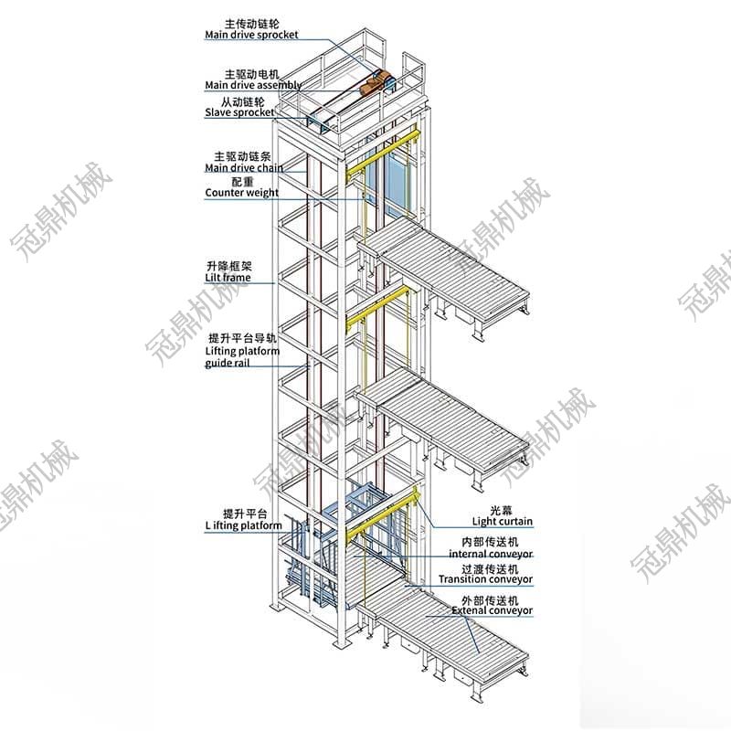四柱E型往復式提升機;四柱E型往復式提升機特別適合多樓層的物料運輸,尤其是在需要同側進出的應用場景中。其同側裝卸設計使得裝卸作業更加簡便,能夠有效地提高作業效率。適用于各類需要跨樓層運輸的環境,如多層倉庫、配送中心和生產車間等。通過提供穩定的垂直輸送,四柱E型往復式提升機能夠在多個樓層之間快速、安全地移動物料,且節省空間,最大程度地提高工作流暢性。