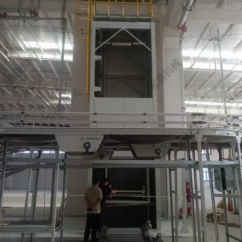 立庫分揀循環往復式提升機是一種用于自動化立體倉庫(立庫)的高效物料垂直輸送設備,主要用于貨物的上下層搬運、分揀及與輸送線的接駁。