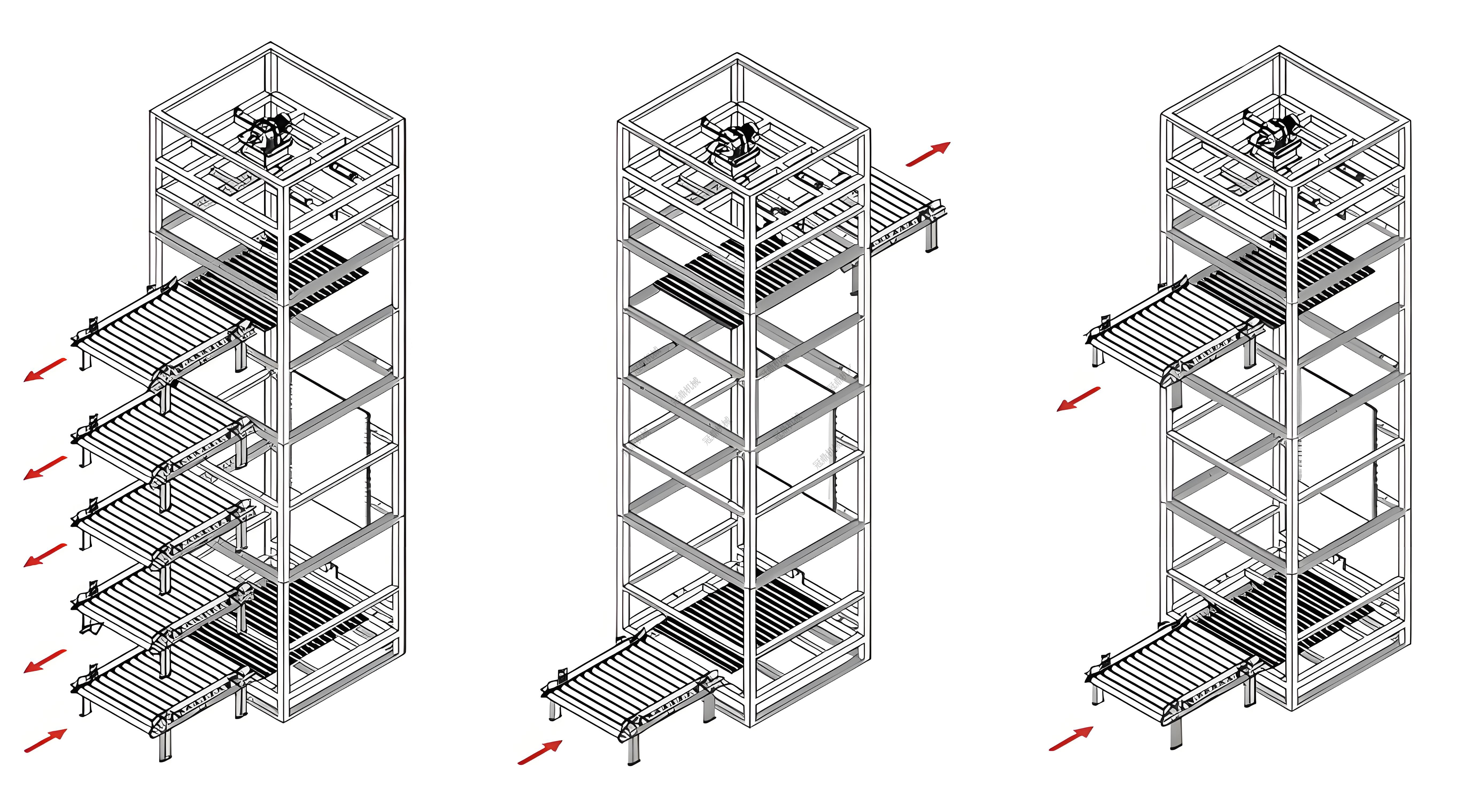 往復式提升機是一種高效的垂直輸送設備,適用于不同樓層之間的貨物運輸。其工作原理是通過四根閉合鏈條驅動,鏈條上安裝可升降的輸送機,實現物料的精準升降和輸送