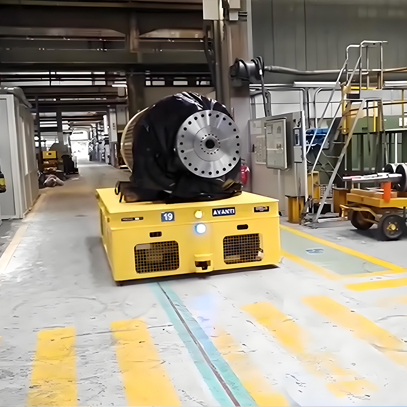 40 噸感應導引重載AGV運輸車本款40噸重載AGV運輸車采用感應導引技術,專為重型工件如模具、結構件、金屬卷材等在工廠內部的高效搬運而設計