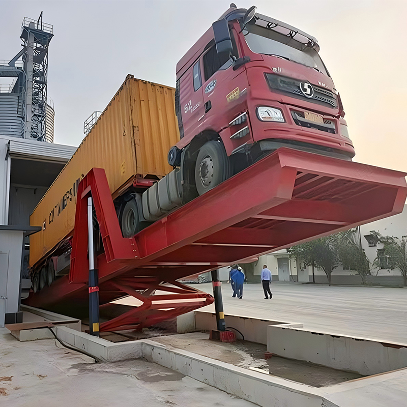 后翻式卸車機是一種高效裝卸設備,通過夾緊裝置將整車固定在平臺上,啟動傾斜裝置后將卡車整體抬高至45°的傾斜角度,利用貨物重力自然